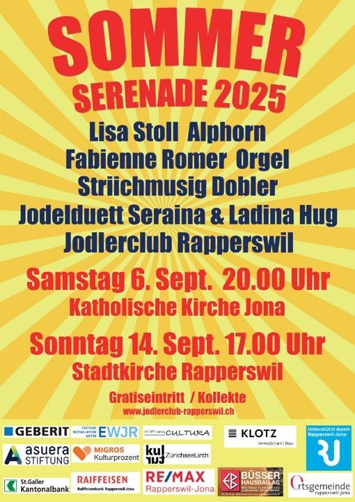 Ende August fanden unsere Konzerte mit Jodel, Alphorn, Orgel und Streichmusik in der Kirche Jona und Rapperswil statt